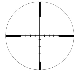 The reticle or crosshair is the point in which the vertical and horizontal lines meet up to make a cross or “+”. This is the aiming point. There are many variations of reticles including, but not limited to fine crosshair, duplex crosshair, german reticle, target dot, and mill-dot.